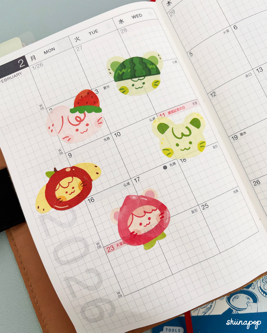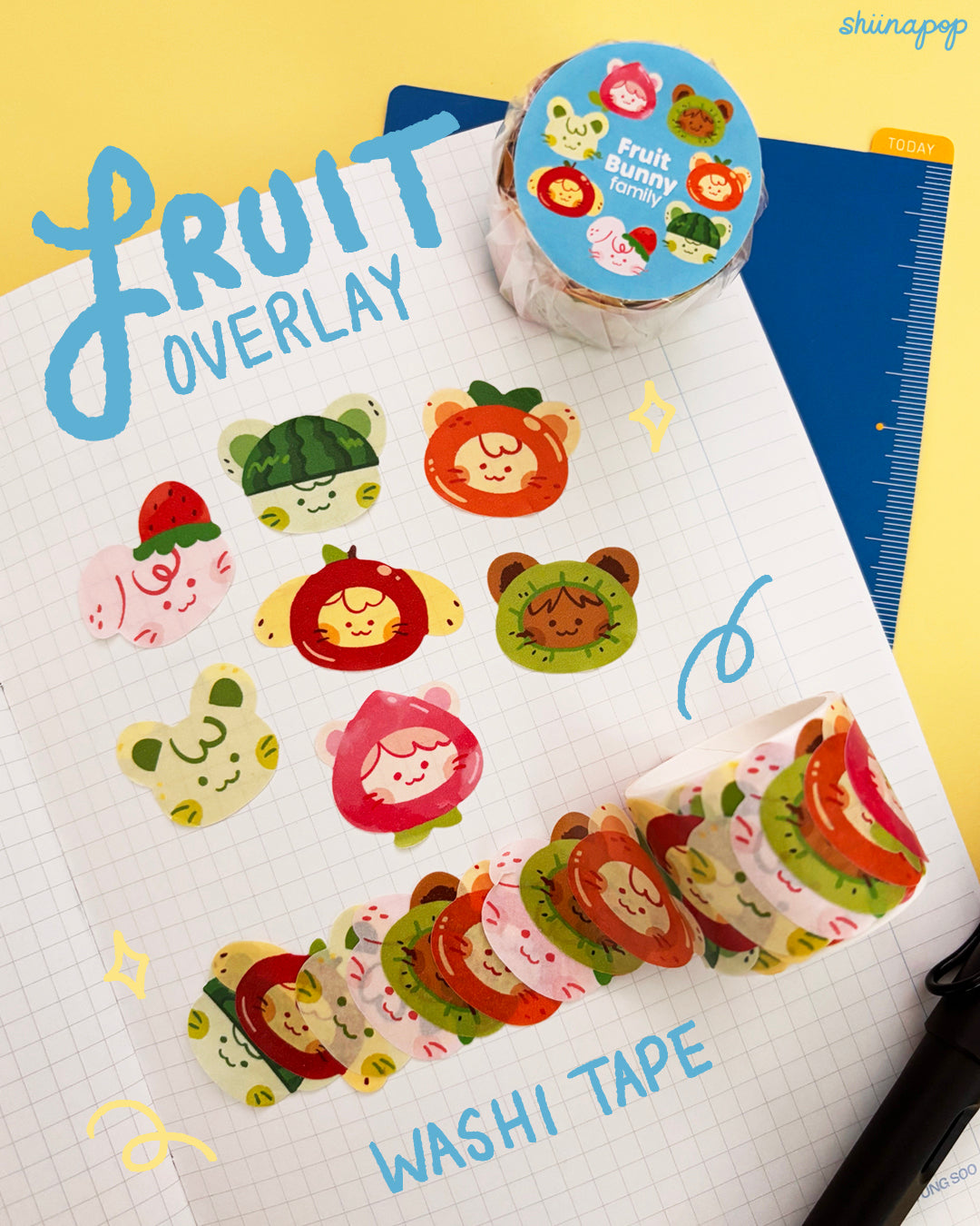 Each Fruit Bun is its own individual sticker, printed on washi tape paper.